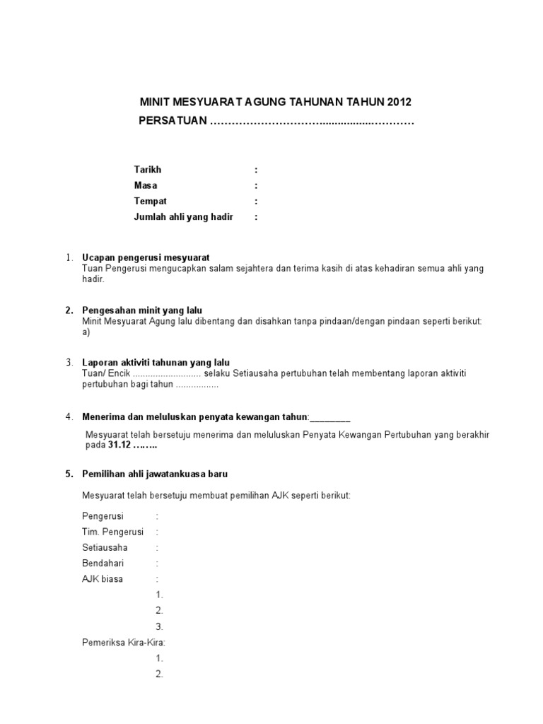 Contoh Minit Mesyuarat Agung Pdf