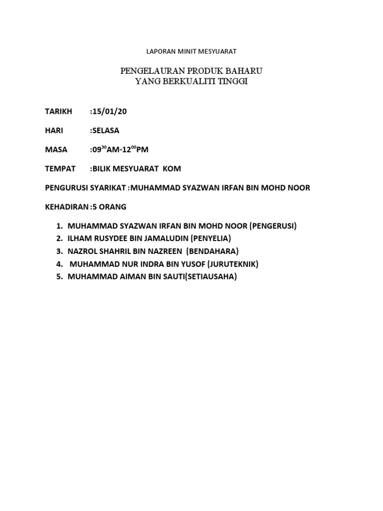 Contoh Laporan Minit Mesyuarat Pdf